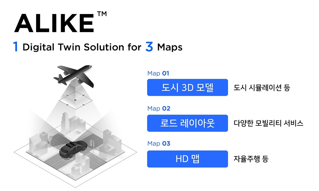 어라이크는 항공사진과 인공지능(AI)을 활용해 도시 3D모델과 도로 레이아웃, HD맵(고정밀지도) 등 핵심 데이터를 제작할 수 있다.