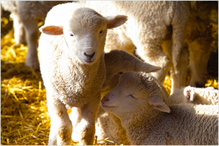 목동은 둘러맨 새끼 양 한 마리와 함께