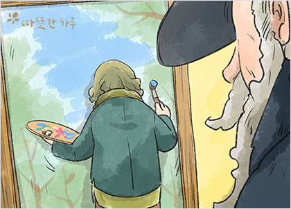 그러던 그때, 제자 중 한 사람이 붓을 들곤