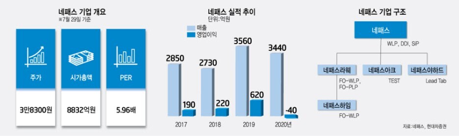 네패스 계열사 간 시너지 확대가 용이하다는 것도 또 다른 강점이다. 네패스라웨과 2020년 11월 상장한 네패스아크가 대표적이다. 네패스가 주력으로 하는 시스템 반도체는 메모리보다 다품종 소량 생산 방식이며 기술 난도가 높아 후공정 생태계 분업화가 필요하다. 네패스는 WLP, 네패스라웨는 팬아웃, 네패스아크가 테스트를 맡으며 고객사가 요구하는 '원스톱' 후공정 서비스를 제공할 수 있다.