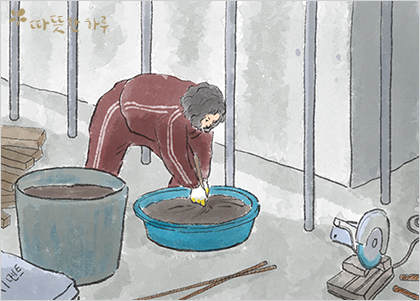 하루에 100포 넘게 옮겨다가 모래와 섞어
