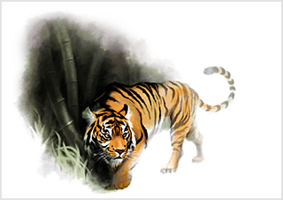 험상하게 생긴 호랑이 한 마리가 포효하며 덤벼들었습니다.