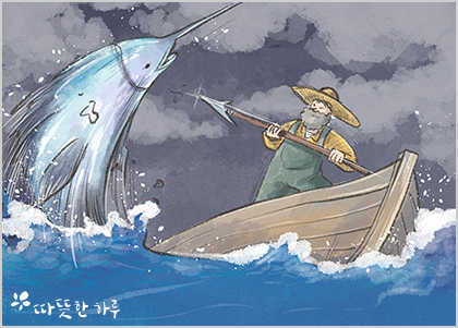 낚시를 하며 살아가는 노인 '산티아고'입니다.