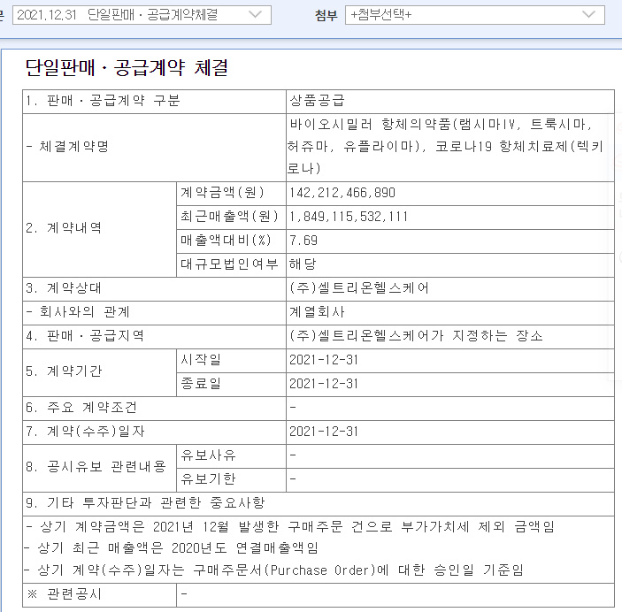 [셀트리온 공시]