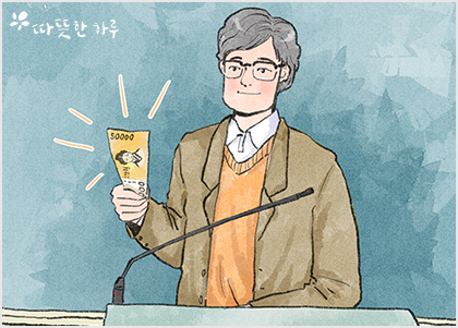 그러자 교수는 그 지폐를 주먹에 꽉 쥐고