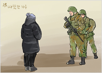 군인은 화면 속 어머니를 보자 참았던 눈물을