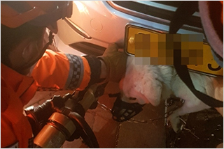 범퍼를 뜯어내야 하는데 주인 없는 유기견이기에