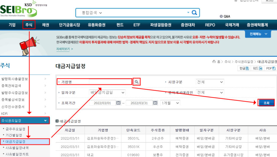 오르비텍이란 종목은 배당금지급일로 조회하면 안되고 단주대금지급일로 선택해야 조회가 되는 경우도 있어서 혹시나 검색이 안된다면 두개 모두 조회해보시길 추천드려요.