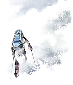 그는 마을을 찾기 위해 눈 속을