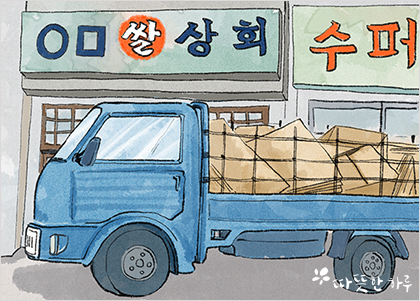 트럭을 끌고 동네를 다니며 고철을 수거하는데