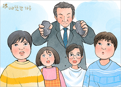 나머지 손에 들려있던 돌멩이는 단상 밑에