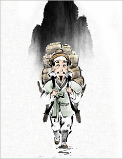 봇짐을 가득 지고는 산을 넘고 있었습니다.