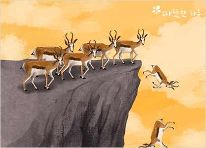 결국 뒤쪽에 따라가는 양들이 뜯어먹을 풀이 없게 되자