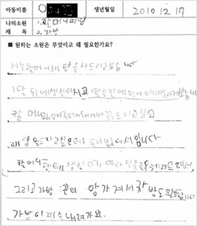 자신이 갖고 싶었던 선물을 적어 보내는데
