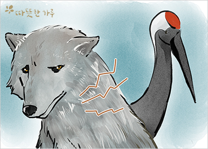 결국 학은 늑대의 입에 긴 주둥이를 집어넣고