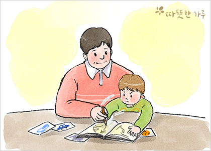 아버지가 쓰는 글씨를 보고 있던 아이는