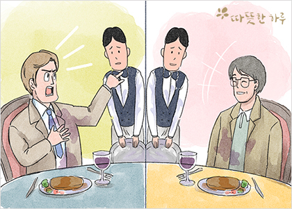 실수한 웨이터를 대하는 상대방의 모습을 보고
