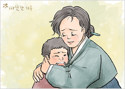쌀자루를 잃어버린 아들을 가만히 껴안고